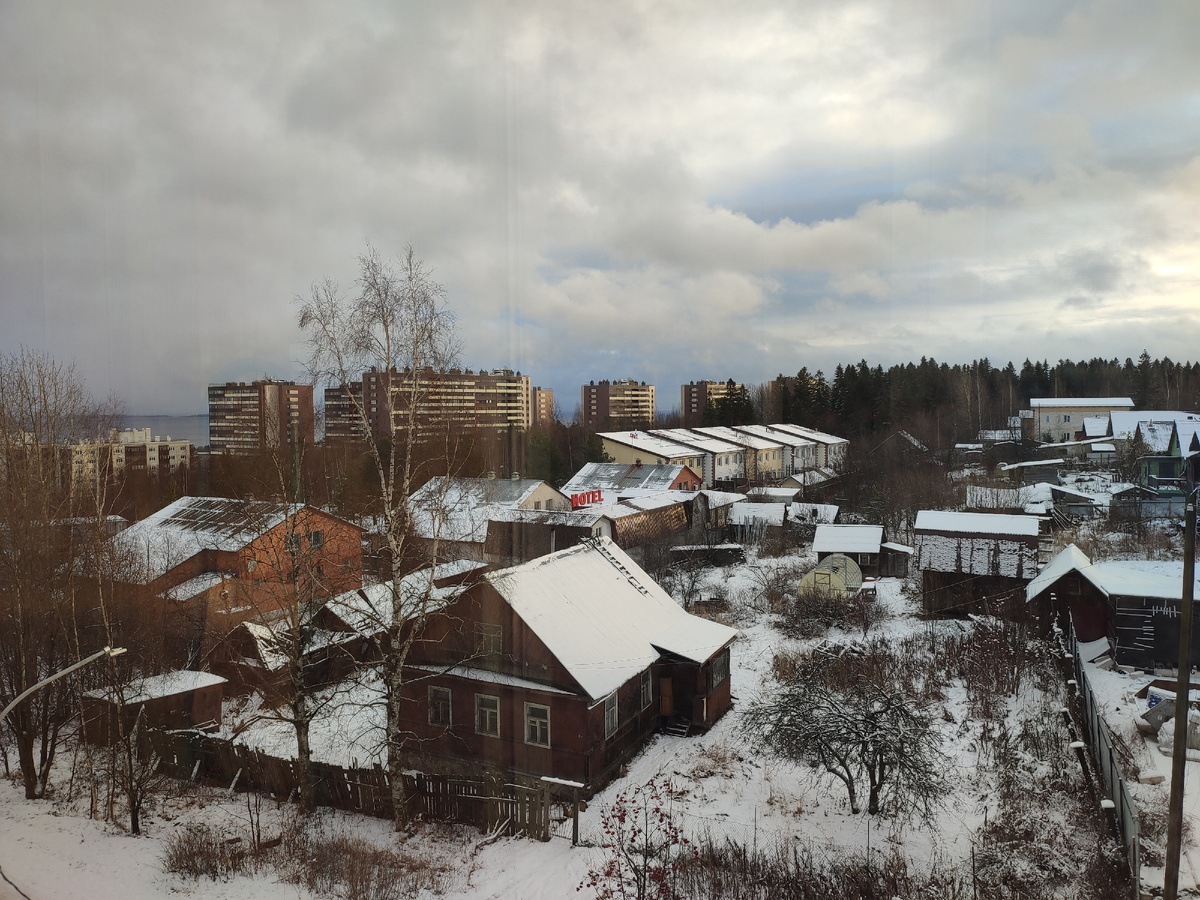 Вторник. 25.11.25. Какие сегодня циферки красивые) Радовалась вчера белому снегу. Утром выглянула в окно, а там от вечерней красоты и половины не осталось👇 Не густо) Прогноз пишет, что на улице +2. Гулять! Заказала на ВБ зефир. С лета не покупала. Тогда какой-то зефирный бум был. Сейчас ценник хорошо подрос и я заказала не тот, который хотела, а чуть подешевле, но с хорошими отзывами. Смотрю, приехал, можно забирать. Хорошо, что выходя из дома решила проверить на какой ПВЗ заказала. Оказалось, что на Петрова, а это значит "здравствуй, лестница". Чем я руководствовалась? Видимо хотела дать себе кардионагрузку) В глубине души даже порадовалась, что погуляю подольше и подальше. Если у нас задувает ветер, то внизу тишина и даже снега меньше. Забрала зефир, прошлась по Нойбранденбургской, Кемской. Вроде и картинка безрадостная, и небо серое, а на душе хорошо. Сейчас активно смотрю свои видео из Мурманска. Сравниваю с ощущениями от прогулок по Петрозаводску. Остро чувствую разницу. Большой