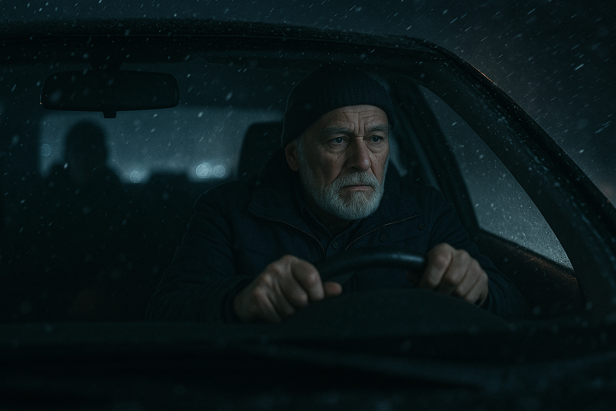 Машина ехала тихо, снег падал на лобовое, а мужчина смотрел прямо вперёд — будто боялся, что если повернёт голову, мир рухнет.