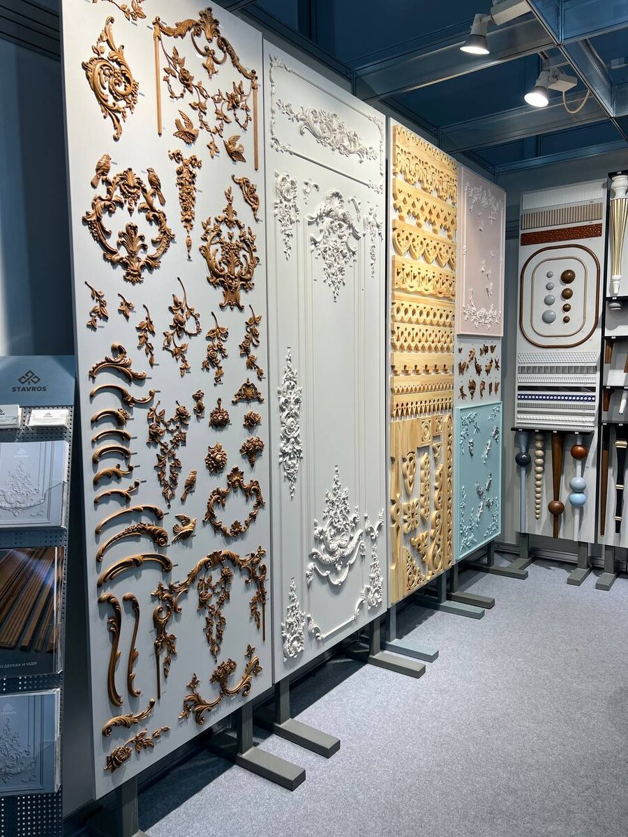 Стенды с коллекциями мебельных комплектующих – ручки, опоры, молдинги, накладки. НОВИНКИ в коллекциях карнизов и плинтусов. Стенд с домовой резьбой, а также, самая популярная коллекция шарообразных форм🔥 Каждому участнику выставки каталог в подарок. 📍Павильон 3. 15А 030