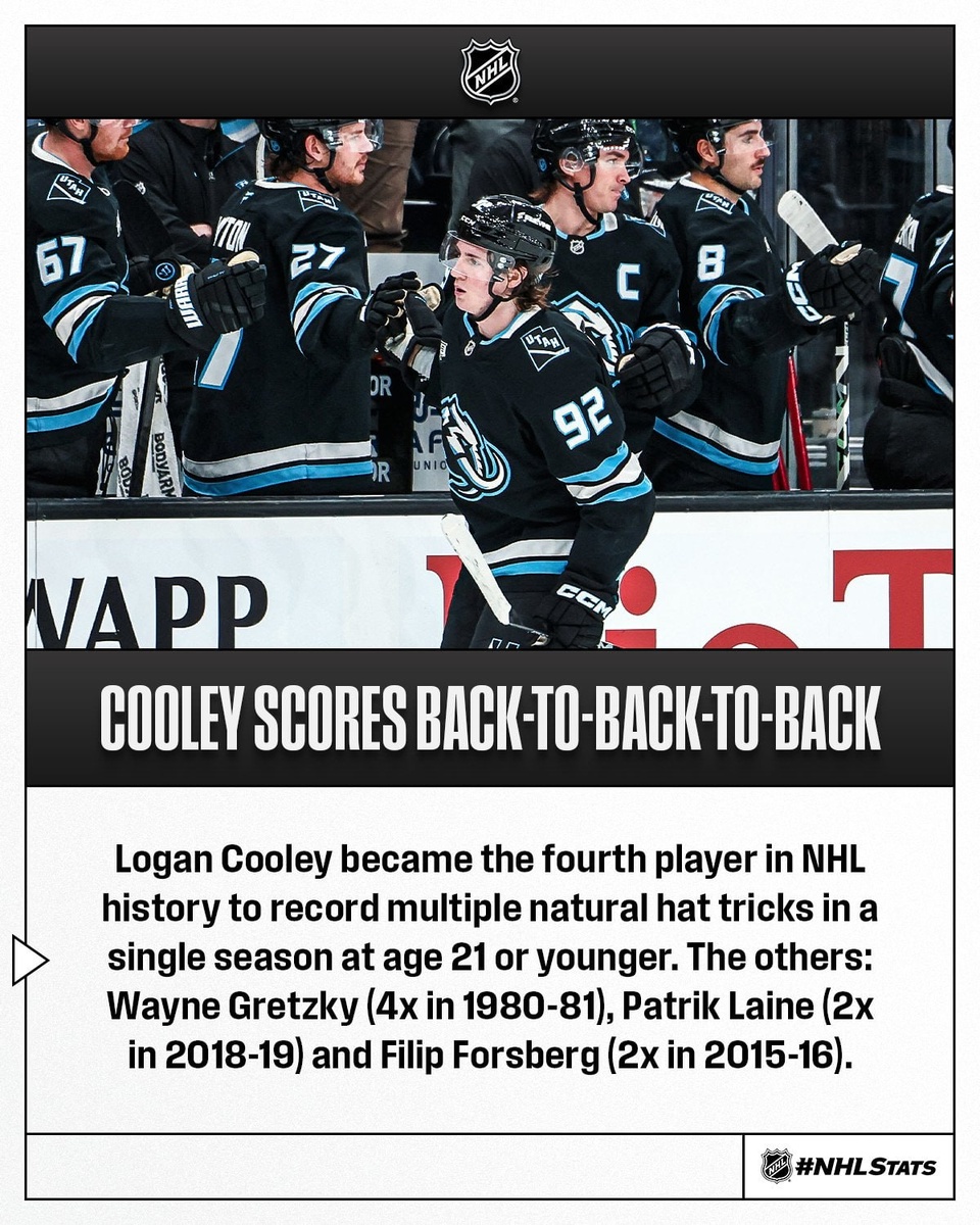 🔖 #MILESTONES #RUMORS & #NEWS 🦣 Логан Кули набрал 4+1 в сегодняшней игре с ⚔️ и стал первым игроком в истории франшизы, оформившим покер. Он стал четвёртым игроком в истории НХЛ, который сделал несколько натуральных хет-триков за один сезон в возрасте 21 года и младше. Остальные — Уэйн Гретцки (4 раза в 1980–81), Патрик лайне (2 раза в 2018–19) и Филип Форсберг (2 раза в 2015–16). ⚡️ Андрей Василевский в 41-й раз сыграл "на ноль". На это потребовалось 556 игр. Столько же "сухарей" у Варламова за 621 игру. ⚡️ Никита Кучеров провёл 49 матч с 3+ передачами и вышел на второе место среди вингеров в истории НХЛ, обойдя Ги Лафлера (48 таких игр). Лидер: Яромир Ягр с 59 играми с 3+ передачами. 👹 «Девилс» продлили свою домашнюю серию игр с набранными очками в начале сезона до девяти (8-0-1) и сравнялись показателем сезоноа1987-88 (8-0-1), что стало вторым по длине результатом в истории франшизы после серии из 10 игр в начале сезона 2016-17 (8-0-2). 🌴 Сэм Беннетт добрался до отметки в 1