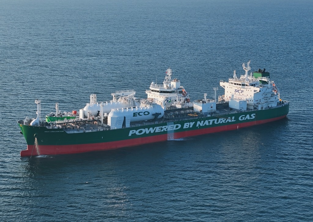 Новый крупнотоннажный танкер "зеленой" серии типоразмера MR получил имя в честь выдающегося художника-мариниста Ивана Айвазовского. Фото: «Совкомфлот». «Иван Айвазовский» – головное судно новой серии танкеров для перевозки нефтепродуктов, в том числе из районов с ледовыми условиями плавания. Суда серии будут эксплуатироваться под государственным флагом Российской Федерации. Дедвейт танкера «Иван Айвазовский» – 49,8 тыс. тонн, длина – 183 метра, ширина – 32,2 метра, осадка – 13,4 метров, ледовый класс – 1B. Танкер построен на российской судоверфи «Звезда», г. Большой Камень, Приморский край. Суда этой серии соответствуют всем действующим международным нормам в области защиты окружающей среды. Танкеры оснащены двухтопливной энергетической установкой, которая предусматривает возможность использования сжиженного природного газа (СПГ) в качестве основного вида топлива, что существенно снижает объем выбросов в атмосферу. Это первый двухтопливный танкер типоразмера MR, построенный в России. С