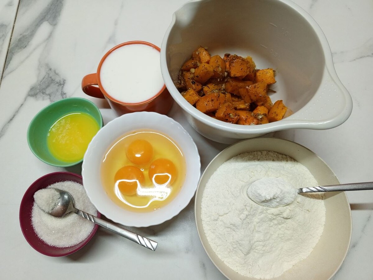 Вчера приготовила две порции запеченной тыквы: 1 - мне в качестве самостоятельного блюда, мужу и дочери - в качестве гарнира; 2 - специально для тыквенных вафель. Обожаю тыквенные вафли именно по этому рецепту: вкусные, мягкие, можно замораживать, готовятся просто и быстро их тех продуктов, которые у нас практически всегда присутствуют в холодильнике. Ну и, конечно же, нужен мультипекарь / вафельница. Тесто готовится при помощи венчика и лопатки силиконовой, и, если хочется, чтобы вафли были все ровными, то не обойтись без кулинарного мешка. Тыкву запеченную можно измельчить при помощи толкушки или погружного блендера. Мне второй вариант ближе. Ингредиенты должны быть все комнатной температуры: Если тыкву запекать без специй и чеснока, то здесь надо будет добавить специи по желанию и вкусу. Выход - 9 вафель Приготовление Взбить яйца с солью и сахаром до появления пены. Измельчить тыкву в пюре, влить кефир и растопленное масло, перемешать. Тыквенную смесь влить в яичную, перемешать. До
