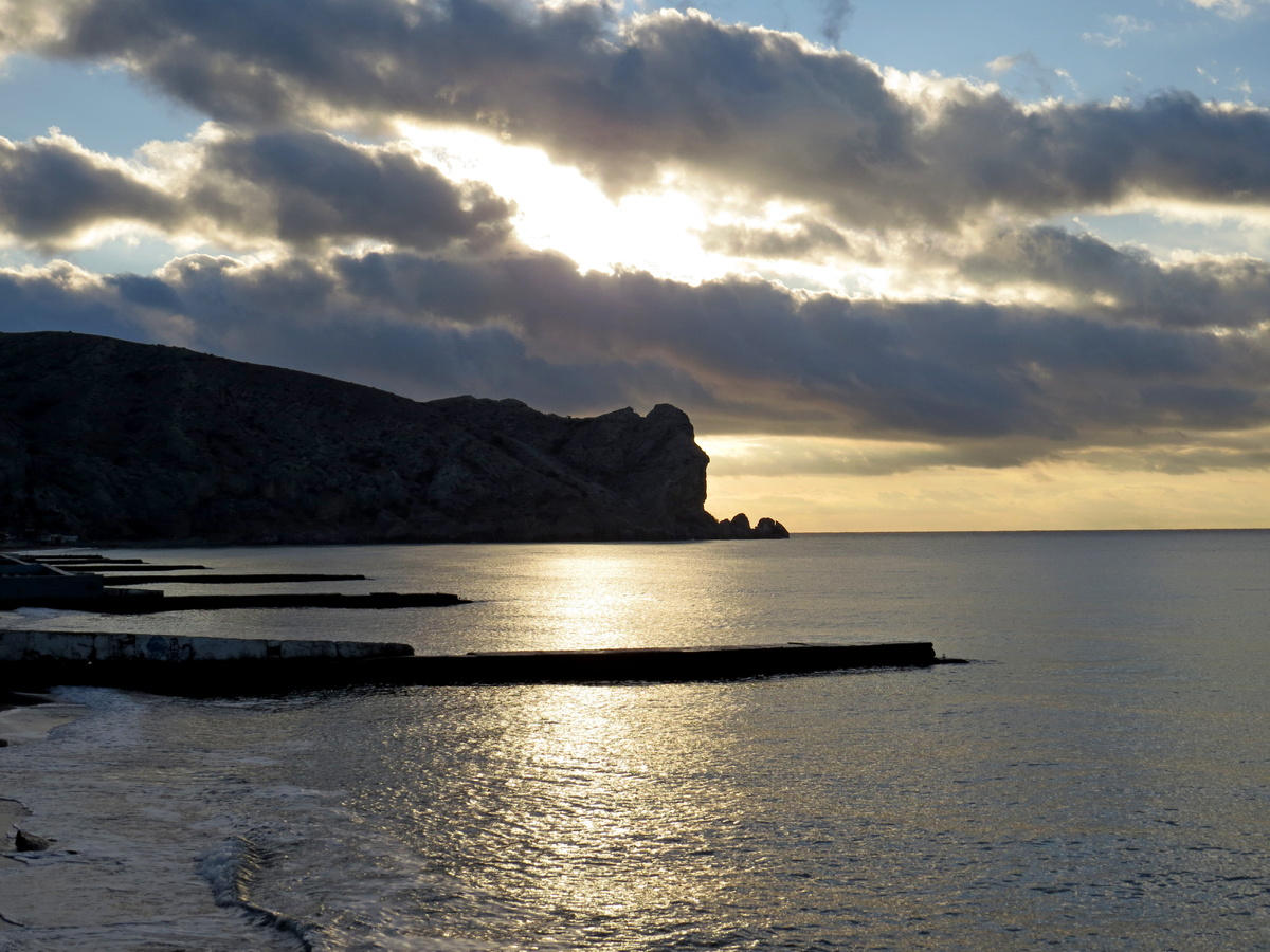 Накануне вечером, Миша сказал, что он по работе едет в Судак. Как замечательно, что у меня этот день (вторник) оказался не рабочим днём! Хочу ли я? Да я, ого-го, как хочу! Пусть ненадолго! Пусть на часик! Но, это же Судак! Утро 25 ноября выдалось к удивлению прохладным. Прохладным, это около +11℃. По всей дороге, пока мы ехали, клубился туман. Он прятался между гор, стелился по полям. Было очень красиво! Приехав в Судак, мы договорились, куда я собираюсь пройтись и разошлись в разные стороны. Изначально я планировала погулять в сторону мыса Алчак. Но, увидев, что эта сторона скал еще в тени, я передумала. Хочется гулять по солнышко. Правда оно усердно пряталось за тучи. Оглянувшись в другую сторону, я поняла, что от меня чуть не ускользнули последние утренние виды! Как же красиво! Солнечный луч, пробравшись сквозь небольшой промежуток туч, осветил Крепостную гору, которая просто засияла ярким утренним цветом! Луч тихонько скользил, то рисуя полоски на Соколе, то освещая горы Нового