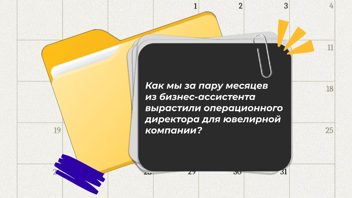 К нам обращался один крупный производитель ювелирных украшений с бриллиантами. Оборот компании порядка полумиллиарда рублей в год, работа в премиум-сегменте, оптовые продажи, B2B. То есть, казалось бы, все стабильно и отлично: продукт востребован, клиенты довольны. Но когда мы вошли в компанию, то сразу заметили очень низкий уровень компетенции управляющего состава. Из простых менеджеров внутри компании вырастили РОПа и операционного директора, но их компетенций было недостаточно для эффективного управления компанией. Тогда было решено привлечь профессионального бизнес-ассистента - человека, который сможет взять на себя организационную часть. Мы нашли специалиста с сильными управленческими компетенциями, у которого: