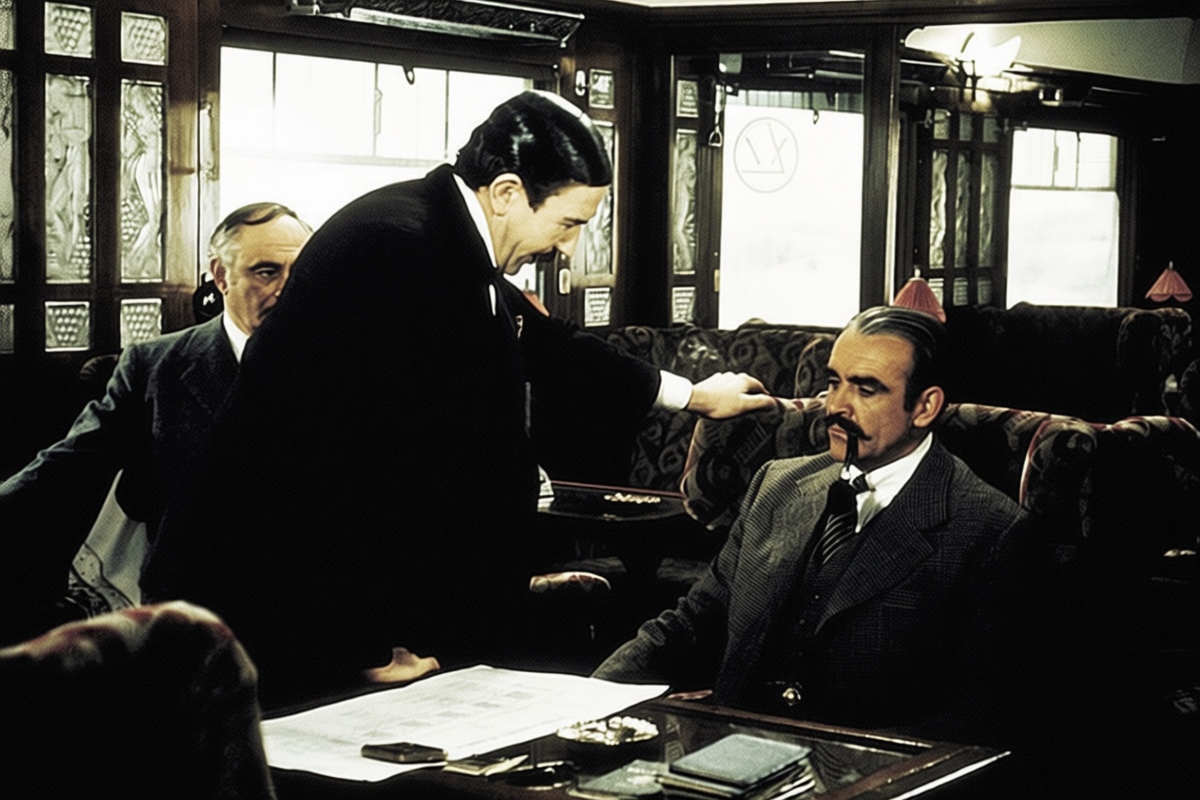 Альберт Финни показывает Пуаро не как непогрешимого гения дедукции, а как человека, столкнувшегося с моральной дилеммой. Когда сыщик понимает правду, что убийцами оказались все двенадцать пассажиров, каждый из которых был связан с семьей погибшей девочки, — перед ним встает выбор. Передать дело полиции или позволить людям уйти безнаказанными за самосуд.