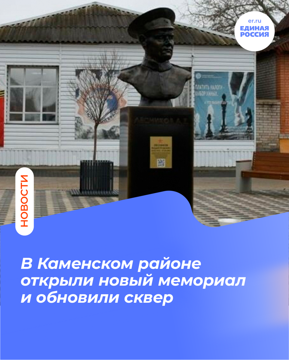 На переулке Чкалова обновили тротуарную плитку, высадили новые клумбы, установили скамьи, урны, велопарковки и фонари. Также открыли мемориальный бюст в честь участника Великой Отечественной войны Андрея Егоровича Лесникова. ✅ Работы проходили в рамках народной программы «Единой России». «Поздравляю жителей поселка Глубокого и его гостей с еще одним приятным обновлением, которое дополнено памятью о людях и тех событиях, которые принесли нашему народу долгожданную победу», - отметил депутат «Единой России» Андрей Курносов.