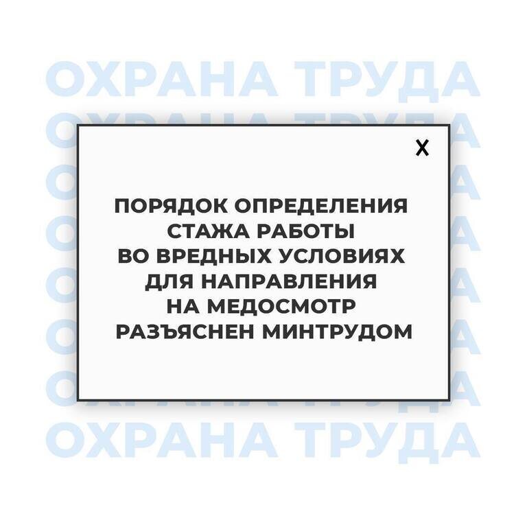 Порядок определения стажа работы во вредных условиях для направления на медосмотр разъяснен Минтрудом ☝🏻Министерство труда и социальной защиты Российской Федерации в своем письме от 29 сентября 2025 года № 15-2/ООГ-1929 (https://www.garant.ru/products/ipo/prime/doc/412947495/) дало разъяснения относительно порядка учета стажа работы сотрудников во вредных и опасных условиях труда для целей направления на обязательные периодические медицинские осмотры. 👉 Основные положения письма: ▫️Работники, занятые на производствах с вредными или опасными условиями труда (подклассы 3.1—3.4, класс 4), подлежат направлению на обязательные периодические медицинские осмотры в центрах профессиональной патологии не менее одного раза каждые пять лет, начиная с момента достижения пятилетнего стажа работы в указанных условиях. ▫️Подсчет стажа начинается с даты подписания трудового договора и охватывает исключительно реально проработанные периоды во вредных или опасных условиях труда. Этот принцип анало