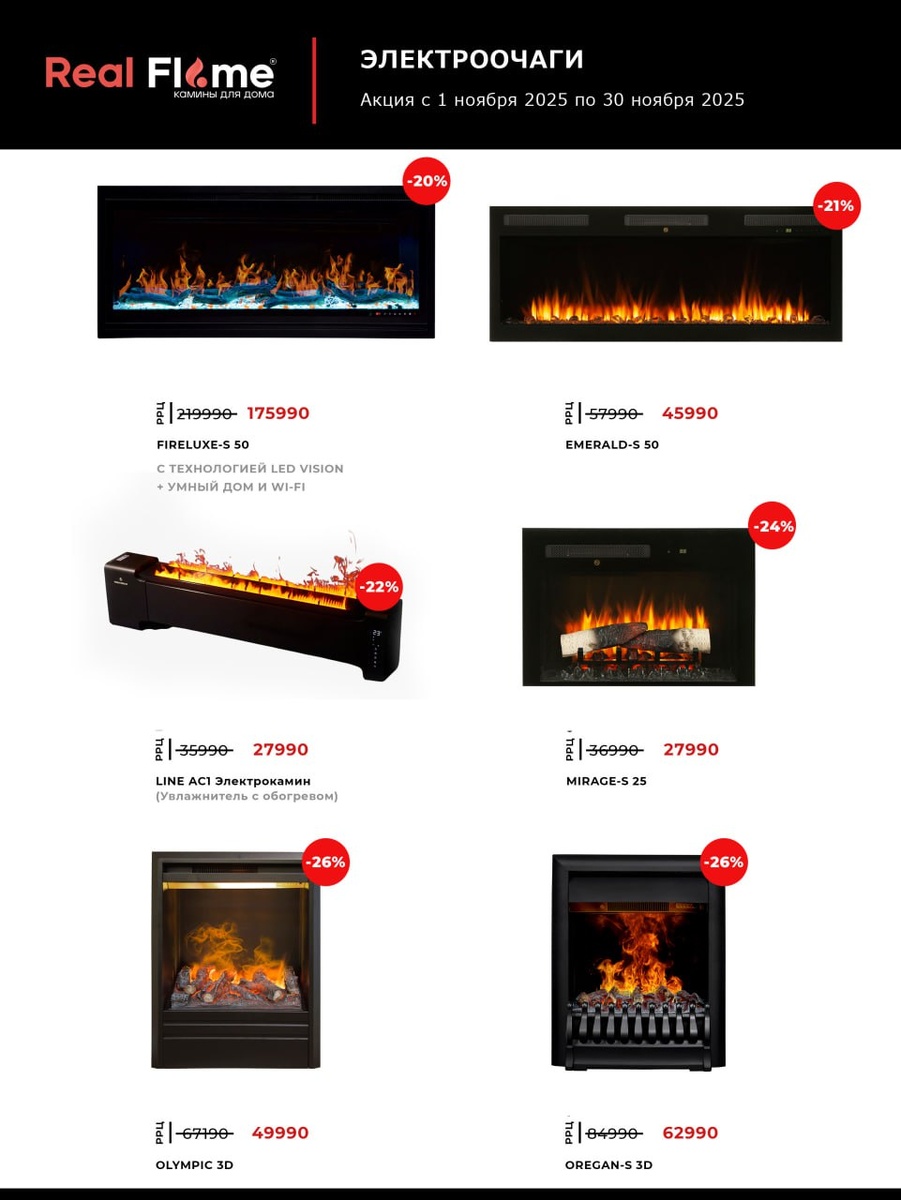 👍🏻 Новые акции на электрокамины до конца ноября! Спешите