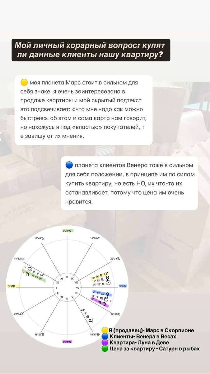 разбор ХОРАРА 1. расскажу вам свою историю с покупателями и заодно покажу наглядно как проигрался хорар. 💤ситуация: покупатели сначала отправили своего риелтора посмотреть нашу квартиру, тем же вечером пришли сами глянуть. попросили скинуть чуть цену и якобы они тут же ее заберут. цену мы скинули. ❓ вопрос: купят ли данные клиенты нашу квартиру?