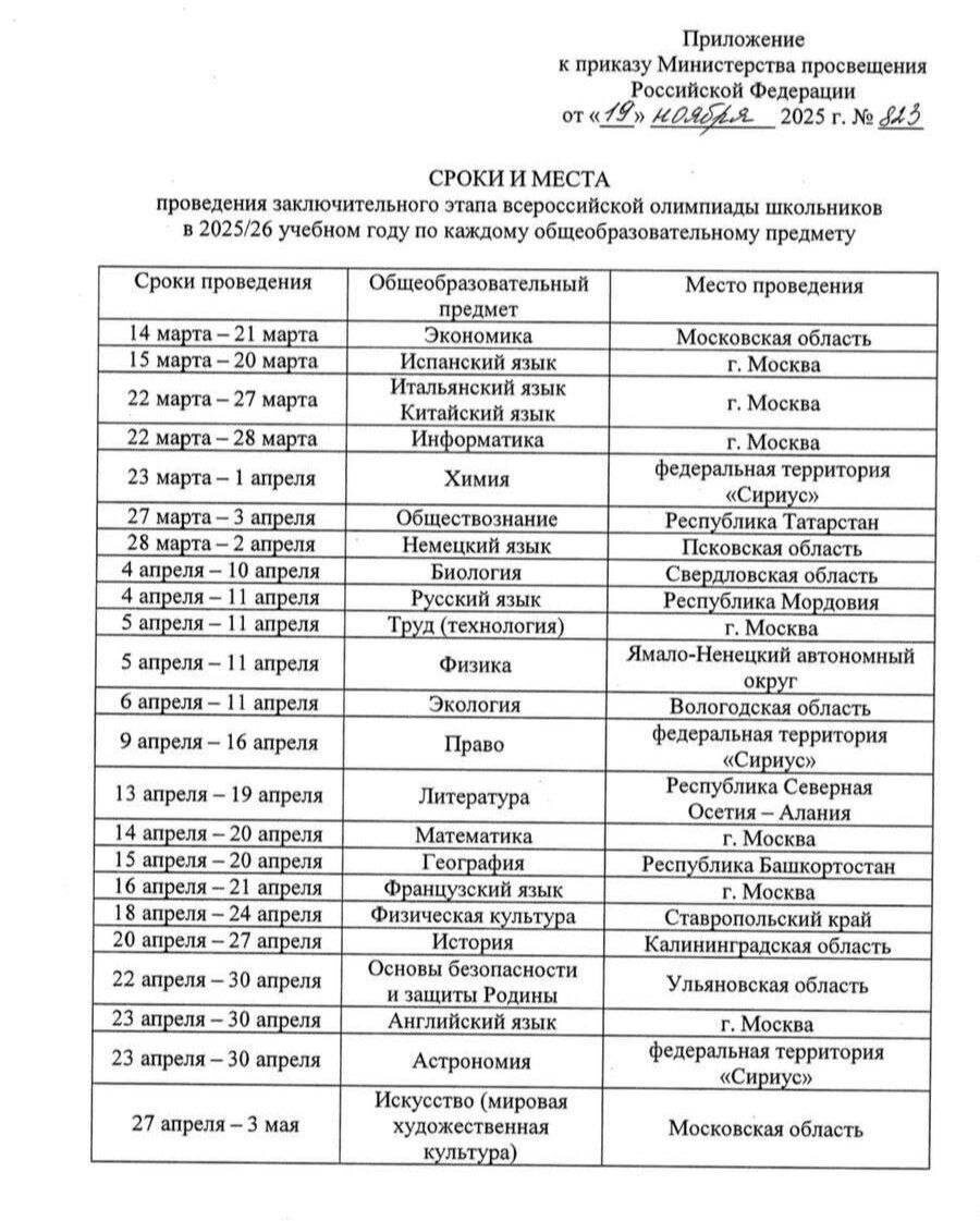 📢📢📢📢📢📢📢 Даты и места проведения заключительного этапа ВсОШ