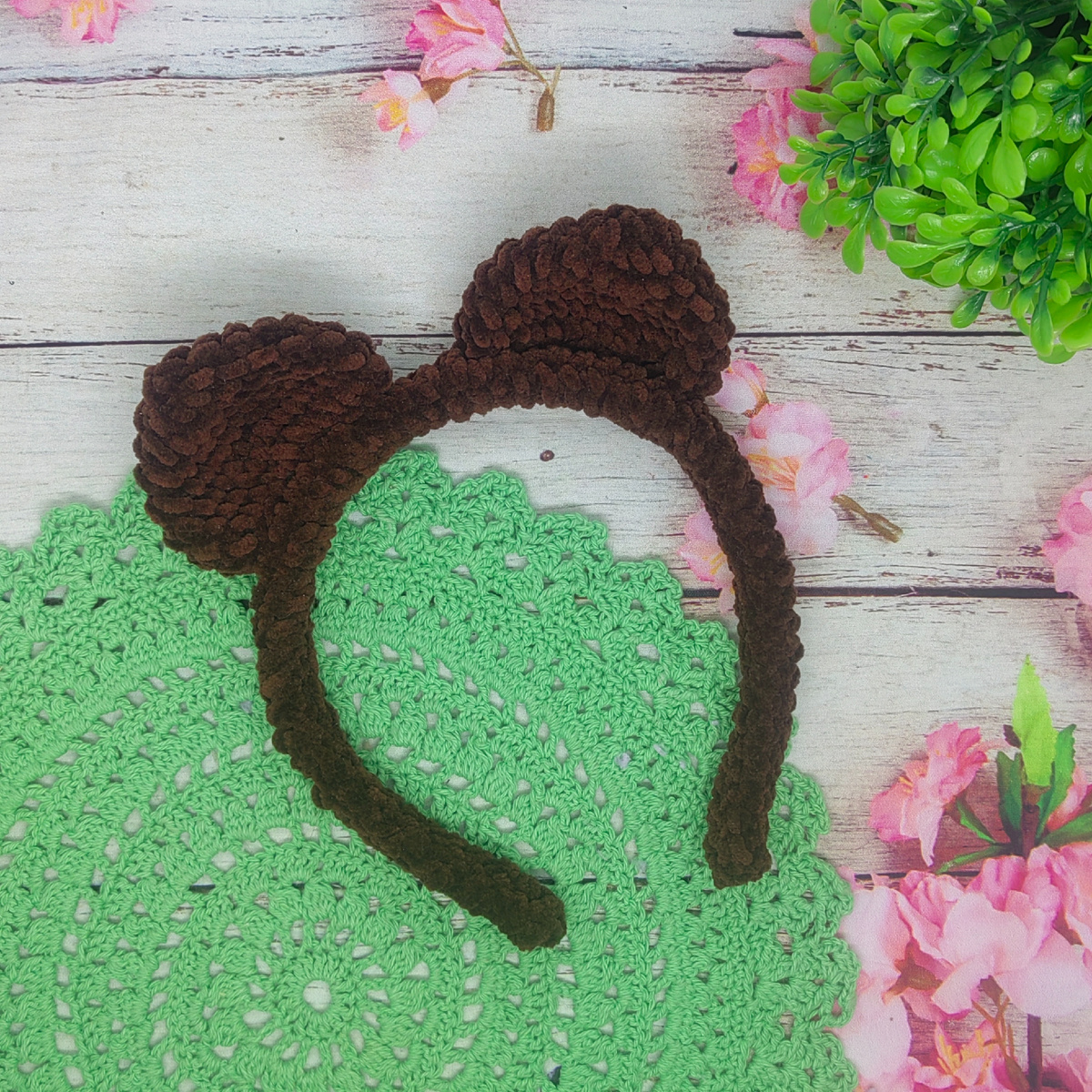 Ободки с ушками: медведь, заяц и волк. Описание вязания крючком из плюшевой нити