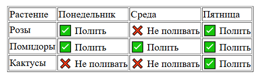 <td>✅ Полить</td>