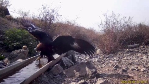 Краснокнижные хищники попали на камеру в Жетысу В национальном парке "Алтын-Эмель" фотоловушки зафиксировали редких беркутов (Aquila chrysaetos), купающихся в водоёме, передаёт Tengri Travel.
