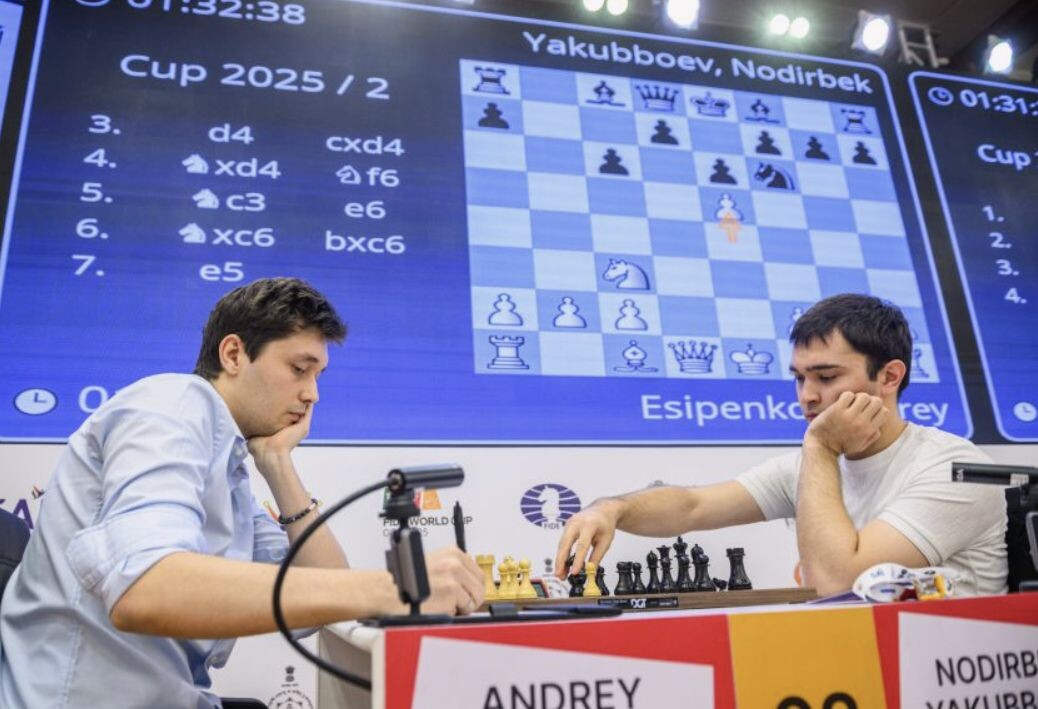 Андрей Есипенко в сухую 2-0 обыгрывает Нодирбека Якуббоева и занимает 3 место на Кубке мира 2025 года. Получает право участия в Турнире претендентов. Вот первая партия Вторая партия