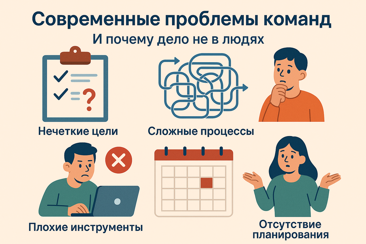 Не в характерах, не в “слабых сотрудниках”, а в том, как команда устроена и как она взаимодействует. И именно поэтому все эти проблемы — решаемые. Руководитель назначен, но команда за ним не идёт.