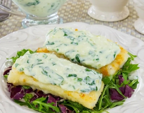 Нежная треска в соусе из шпината и сливок для домашнего ужина