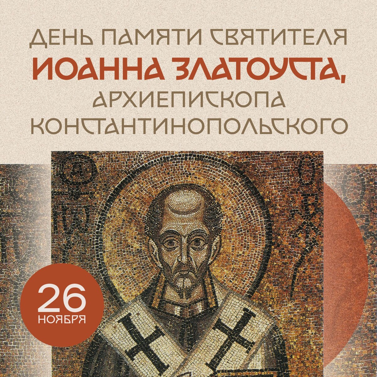 26 (13) ноября православные христиане вспоминают одного из величайших богословов, Отцов и учителей Церкви – святителя Иоанна Златоуста, архиепископа Константинопольского. Он почитается как один из трех вселенских святителей вместе с Василием Великим и Григорием Богословом. Подробнее об Иоанне Златоусте рассказали в карточках: