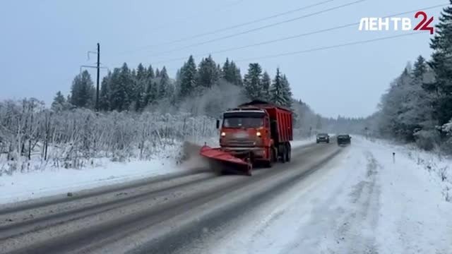 Дорожные службы Ленобласти не прекращают расчистку трасс