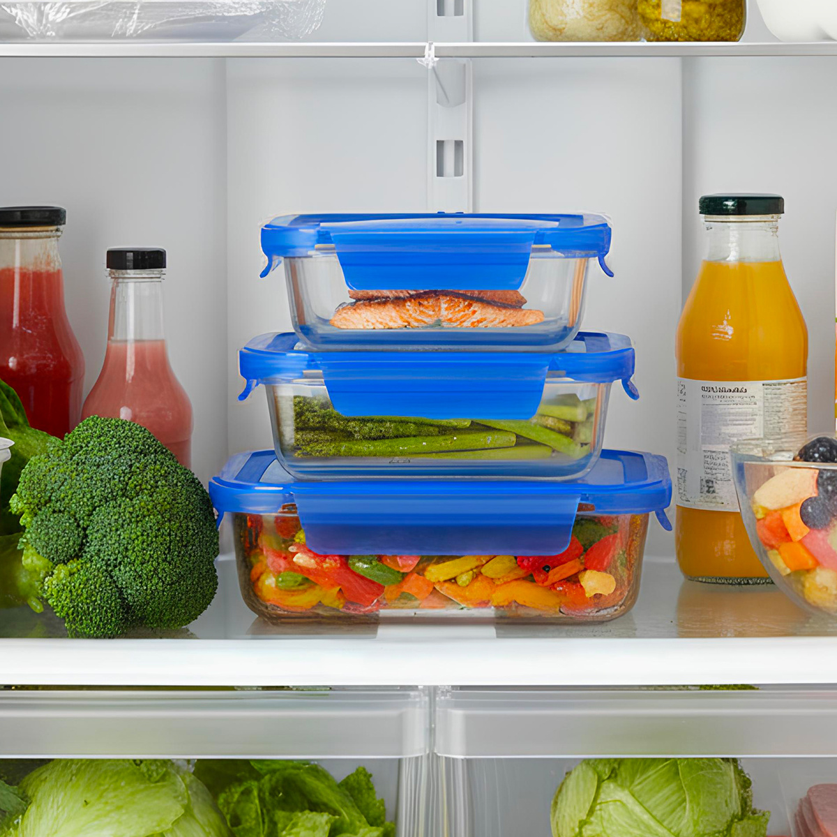🔸Благодаря жаропрочному боросиликатному стеклу контейнеры можно использовать для приготовления пищи в микроволновой печи, духовке, а также для хранения пищи в холодильнике и морозильной камере.