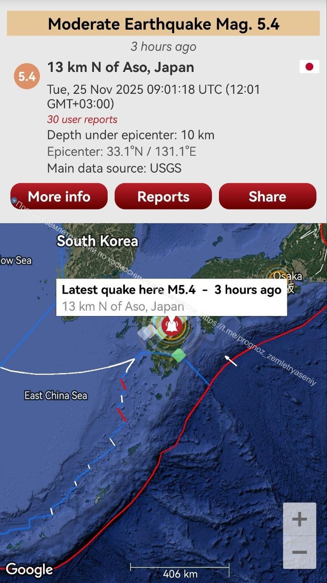 В ответ на пост Японию на острове Кюсю навестило умеренное ощутимое М5.4 Наблюдаем далее...