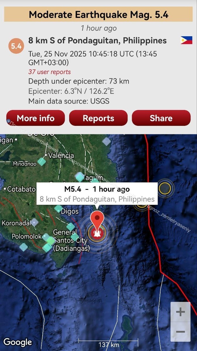 В ответ на пост Филиппины пока что получили умеренное ощутимое М5.4. Наблюдаем далее...