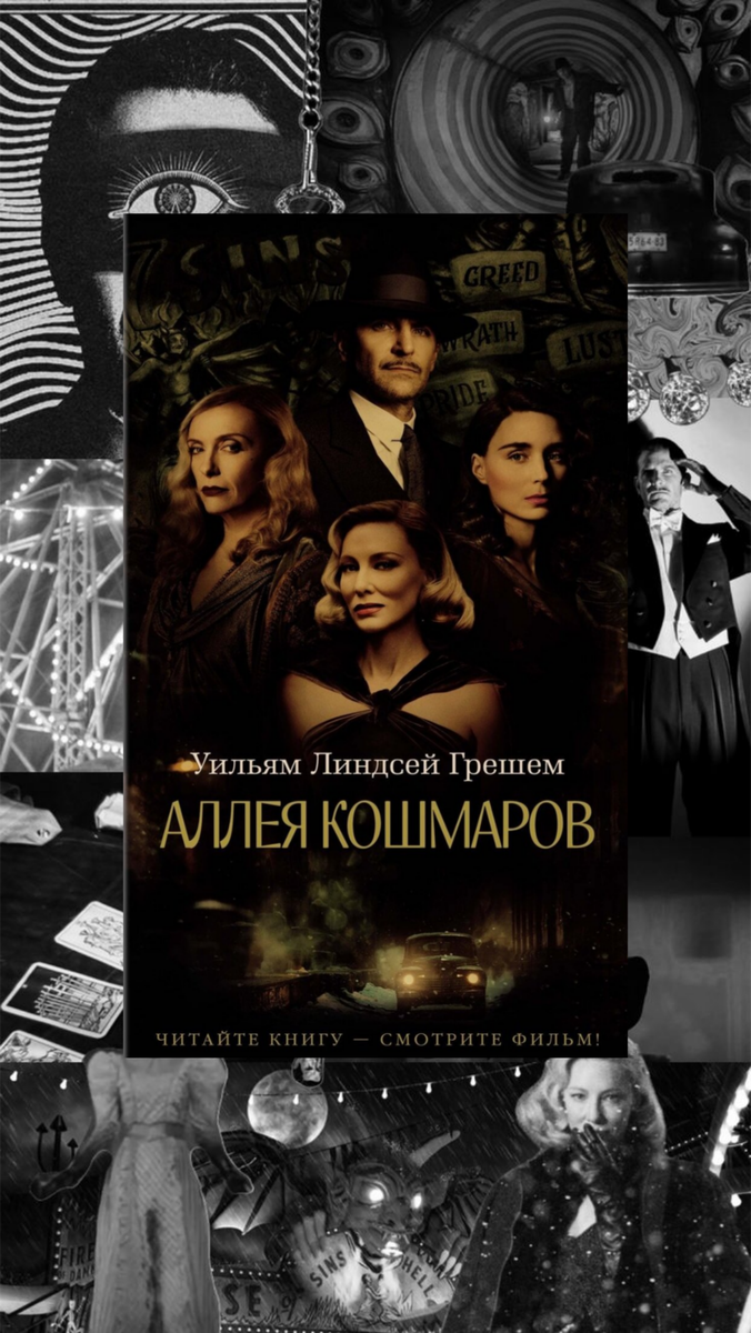 То чувство, когда экранизация 2021 года была лучше, чем оригинальная история. Я такое пишу крайне редко, но тут все и в самом деле печально. Стэн Карлайл, работник странствующего балагана, мечтает о славе менталиста. Он добивается успеха: выступает на престижных площадках, женится на ассистентке и проводит спиритические сеансы для элиты. Но прошлое не отпускает: героя преследует образ «переулка кошмаров». Роман показывает изнанку «американской мечты» — путь человека во тьме, где неизвестно, будет ли свет впереди. С одной стороны, задумка интересная: нуарная история о взлёте и падении мошенника‑менталиста, играющего на человеческих слабостях. Есть атмосфера, есть мрачная символика «переулка кошмаров», есть потенциал для глубокого психологического портрета. Но реализация меня разочаровала. Повествование кажется рыхлым и растянутым — много описаний, мало динамики. Персонажи очерчены довольно схематично: чувствуешь, что мог бы узнать их лучше, но автор не даёт такой возможности. Диалоги