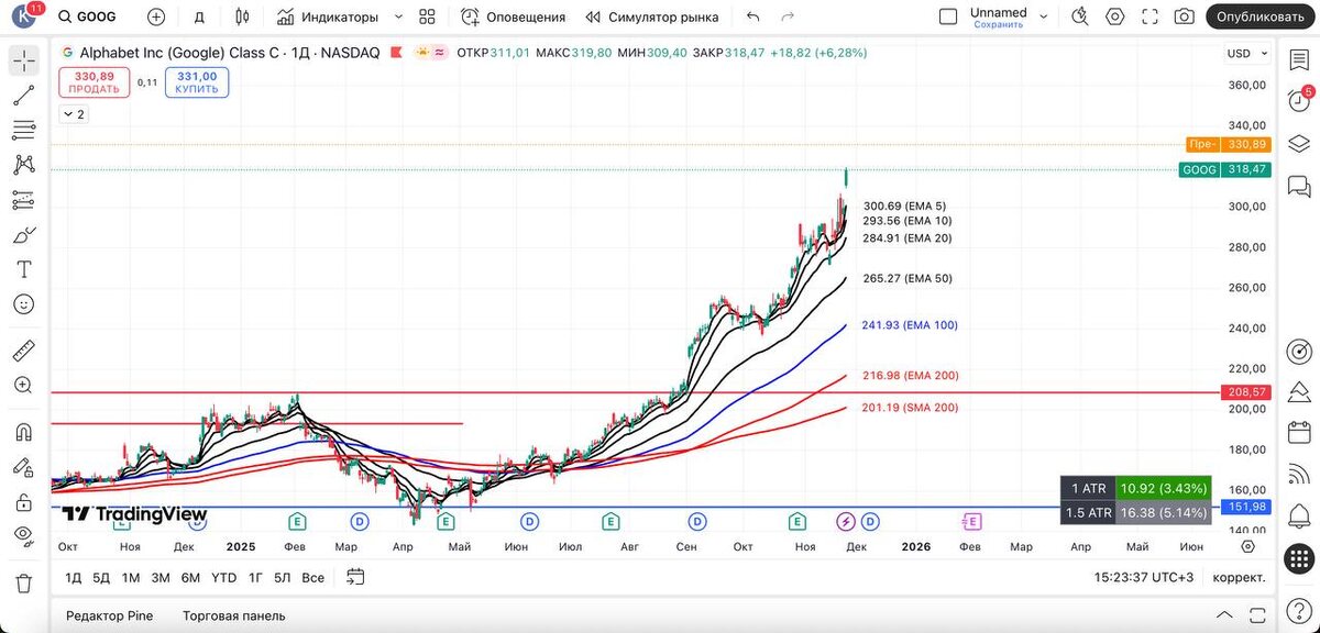 В ответ на пост Чемпионам не мешаем, а от сорняков избавляемся. Как говорил тут перед отчетом, закрыл большую часть, и на пулбэке вновь добавил. Хорошо держит 20 EMA D, поступают хорошие новости, даже Баффет не стал придумывать для себя по типу «недооценённые акции», а просто взял и купил сильного лидера. #фондовый_рынок #трейдинг_сша #технический_анализ #америка #goog