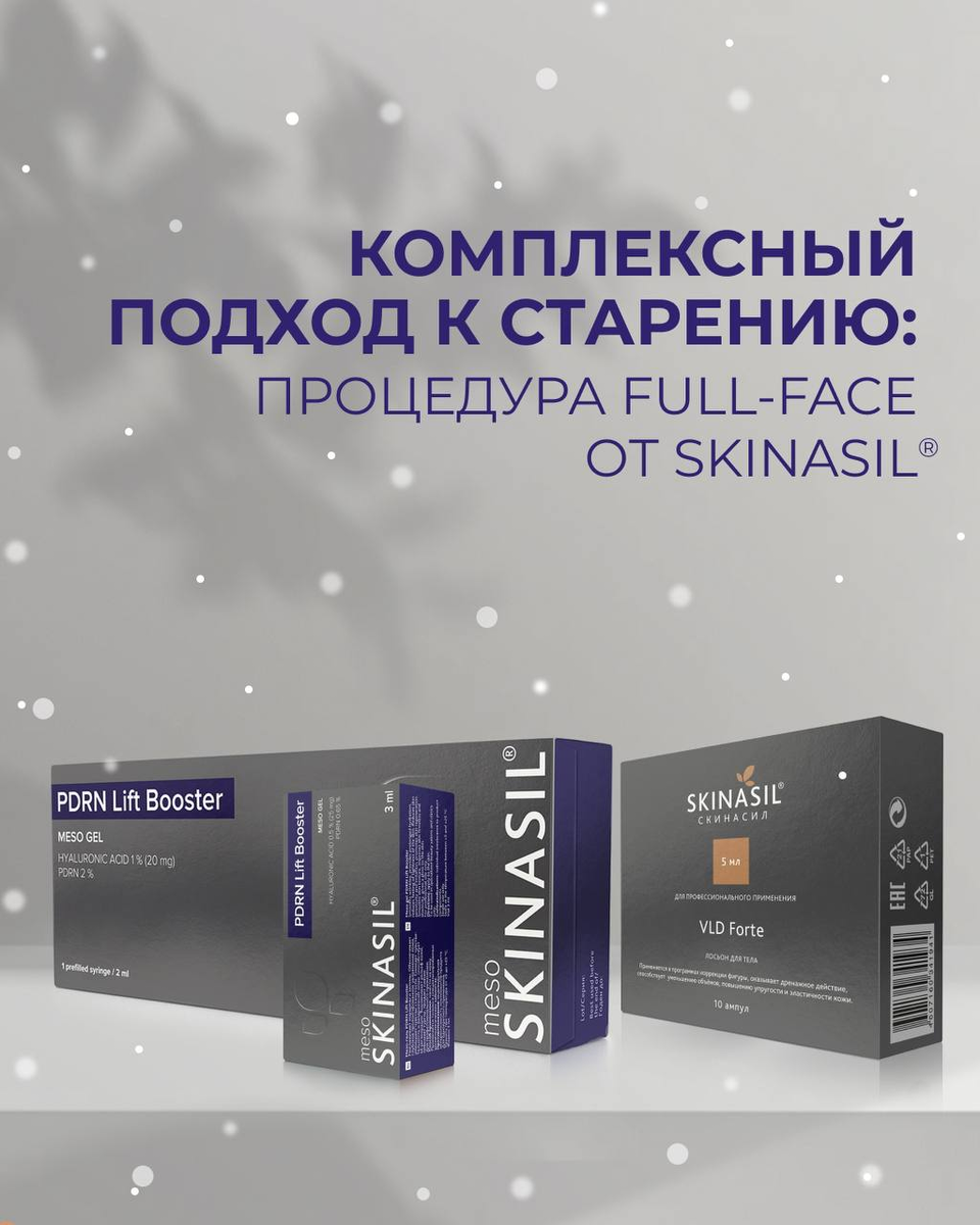 С возрастом мы наблюдаем дефицит влаги, формирование морщин, гравитационного птоза и ухудшение барьерных функций кожи. Определив морфотип старения пациента, мы можем грамотно подобрать метод коррекции возрастных изменений. Но как часто вы встречаете человека, которому характерен определённый тип старения? В основном мы видим комбинацию мелкоморщинистого и деформационно-отёчного морфотипа: • в средней и нижней трети лица характерны деформационные изменения и отёчный синдром • в области орбиты и периоральной зоне — мелкоморщинистый тип Сочетая мезопрепараты SKINASIL® мы можем одновременно и снять отёчный синдром, воздействуя на дренажную систему и корректируя деформационные изменения, и улучшить плотность и эластичность кожи, работая с признаками мелкоморщинистого типа: 🟣 Работая VLD Forte по дренажным зонам мы получим выраженный моделирующий и лифтинг-эффект, а также уменьшим отёчность. 🟣 PDRN lift booster в формате шприца мы прорабатываем зоны лба, средней трети лица и подбородка, ул