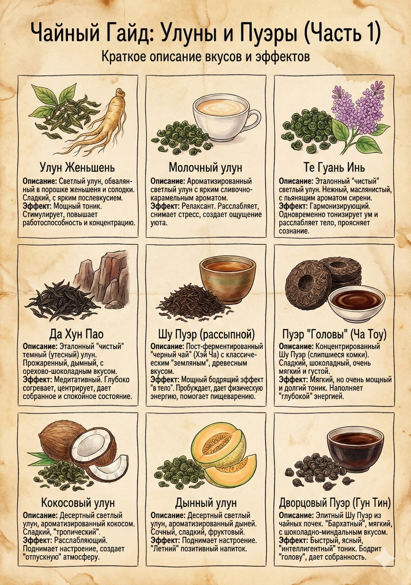 В огромном и разнообразном мире чая улуны занимают особое, почти магическое место. Их называют «бирюзовыми» или «сине-зелеными» чаями, и они являются золотой серединой между нежными зелеными и насыщенными красными (в европейской традиции — черными) чаями. Это не просто напиток, а целая философия, воплощенная в чашке, где мастерство переплетается с природой. Уникальность улунов заключается в степени их окисления (ферментации). Если зеленый чай практически не окислен, а черный — полностью, то улуны проходят сложный процесс, который останавливают на уровне от 10% до 70%. Именно этот параметр — главный определяющий фактор их вкуса, аромата и цвета. Технология их производства — одна из самых сложных: завяливание, сминание, кратковременное окисление, прожаривание (или прогревание) для остановки ферментации, скручивание и сушка. Условно все улуны делятся на две большие группы, происходящие из разных провинций Китая. 1. Светлые улуны (малоокисленные). Родом из провинции Фуцзянь (горы Уишань)