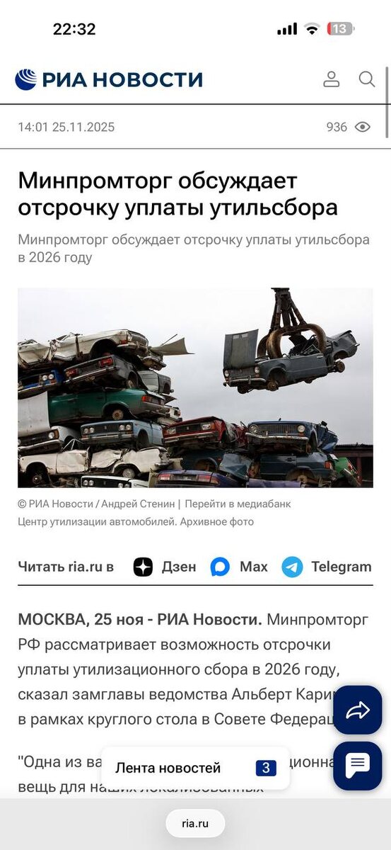 ✅Минпромторг обсуждает отсрочку уплаты утильсбора в 2026 году. Буквально только, что вышли новости. Подробнее можете почитать первоисточник: https://ria.ru/20251125/utilsbora-2057405109.html?ysclid=miek29xx5u736784992 Пока не ясно, хотят его отсрочить только для локализованных производителей или всех. Но! Мы не однократно слышали от сотрудников таможни и тех кто каждый день с ними работает на разных уровнях, что для того чтобы новые правила вступили в силу, нужно что бы у таможни заблаговременно были обновлены базы, программы и т.д. для расчета нового утиль сбора, но на сегодняшний день до сих пор этого не сделано, хотя до введения новых правил остается менее недели. Пока рано радоваться, но есть предпосылки, что его могут снова перенести. В любом случае через неделю будет все ясно. Будем держать Вас в курсе последних всех событий.