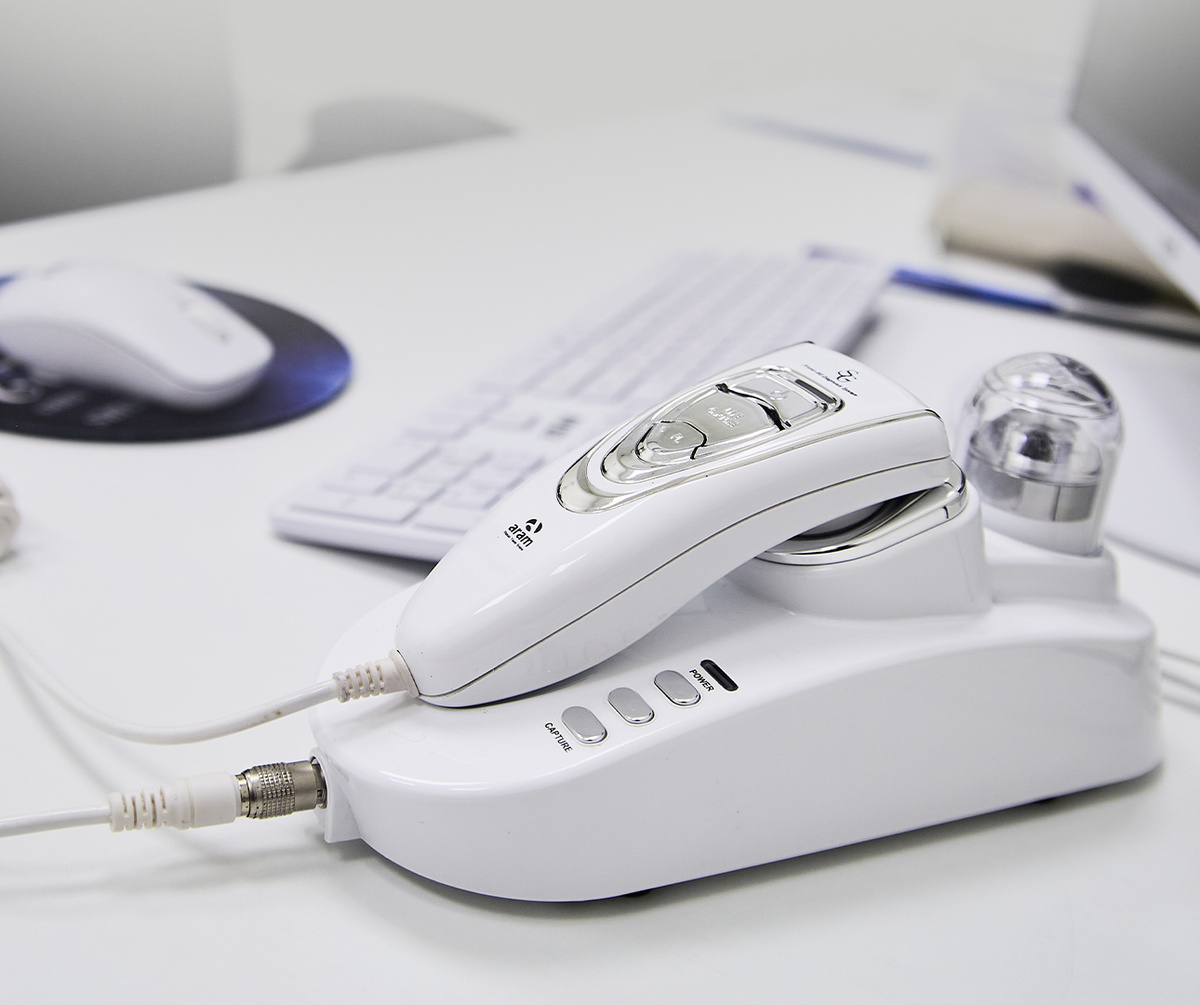 Снижение густоты волос, поредение и истончение — проблема, с которой сталкивается немалое количество людей. Однако многие не догадываются, что причиной этого может быть андрогенетическая алопеция (АГА), проявления которой на ранних стадиях почти незаметны. Выявить АГА и отягчающие факторы помогают современные методы диагностики, такие как трихоскопия и фототрихограмма. - Трихоскопия — это метод диагностики, позволяющий детально оценить состояние кожи головы и волос. Трихоскопические признаки — одни из ключевых при установке диагноза АГА. С помощью трихоскопии врач под увеличением проводит осмотр кожи головы, волос, устьев волосяных фолликулов, сальных желёз и т.д. Используемые при проведении трихоскопии линзы позволяют достичь достаточного увеличения, что помогает максимально точно и подробно произвести диагностику и выявить такие признаки АГА, как: - С помощью фототрихограммы рассчитывается плотность роста волос на кв. см., скорость роста волос, количество анагеновых (в стадии роста)