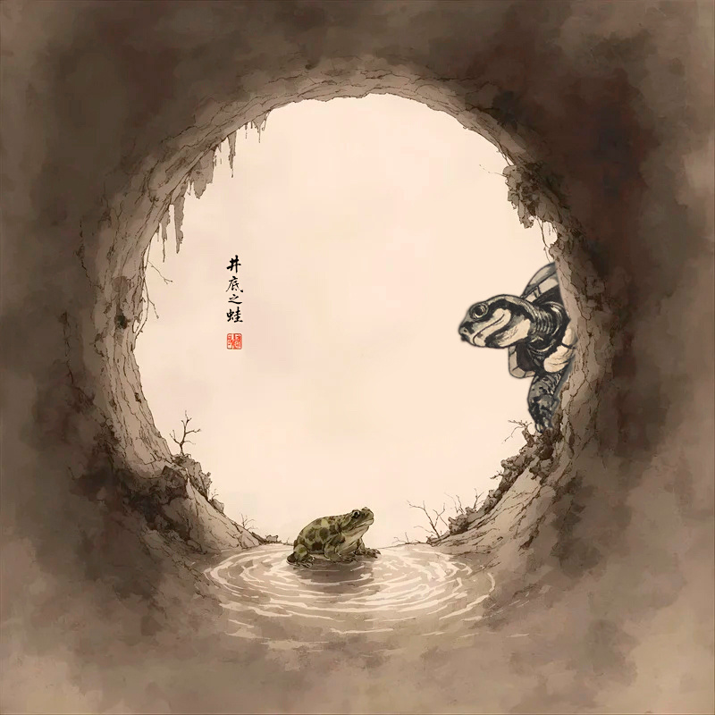 В китайском языке существует выражение «Лягушка на дне колодца» (井底之蛙 — jǐng dǐ zhī wā). Оно восходит к метафоре из трактата «Чжуан-цзы» и сегодня звучит как упрёк человеку с узким кругозором. Но у самого Чжуан-цзы лягушка не была глупой и не заслуживала осуждения. Она служила метафорой иллюзии собственной полноты: уверенности, что твой «маленький колодец» — и есть весь мир. Народной фантазии такая «сжатость» показалась недостаточной. Метафора обросла подробностями, как камень мхом: лягушка стала героиней, а колодец — сценой. Вот одна из таких версий — вольная, но сохранившая дух даосской мудрости. Она рассказывает о лягушке, жившей на дне глубокого колодца, где вода была прохладной, а тени — уютными.