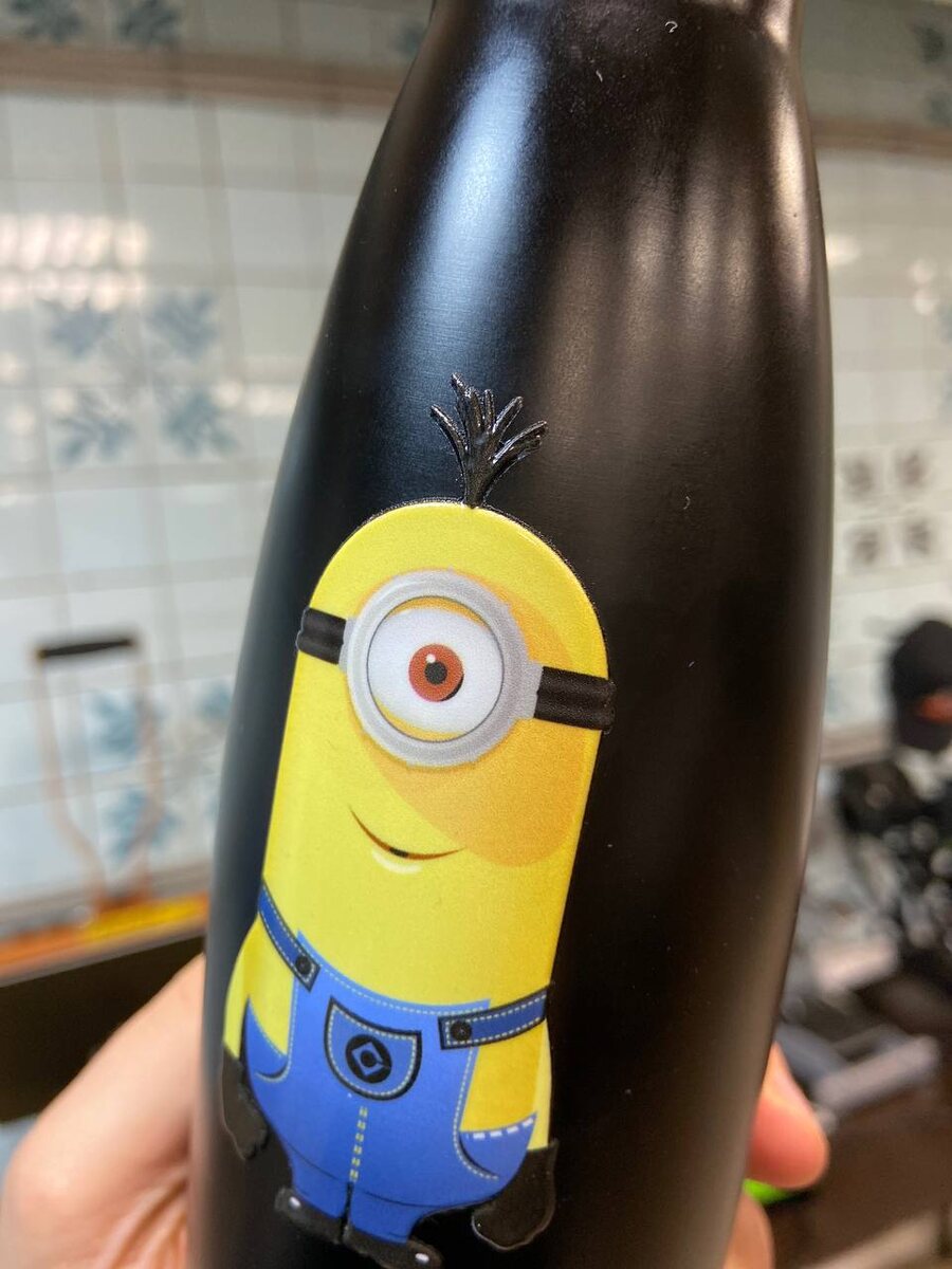 Сперва подготавливаем логотип к печати, затем печатаем. После обезжириваем поверхность образца к перед нанесением, в нашем случаи это термокружка. После берем пленку с будущим героем (логотипом), аккуратно отделяем слой, прикладываем к холодному металлу, слышим легкое шуршание пленки и начинаем выгонять воздух от центра к краю. В этот момент внутри всегда чуть замирает - как ляжет, чтобы было красиво Когда первый раз перенесли такой яркий рисунок на черную бутылку, металл был чуть прохладный, матовый, а герой на наклейке буквально "выстрелил" цветом Мы не гонимся за тем, чтобы сразу оклеить целую партию. Нам важнее сначала вместе с Вами посмотреть на один образец, потрогать, пок