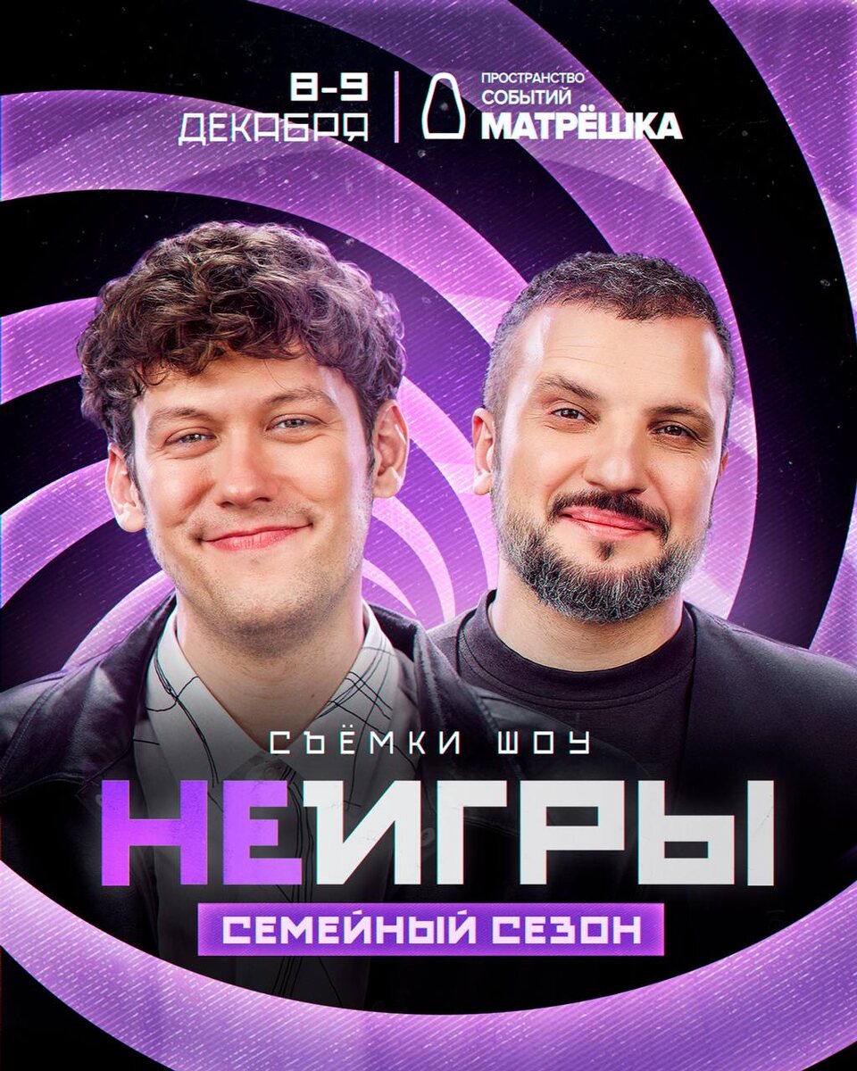 Съёмки шоу «Неигры. Семейный сезон» пройдут 8 и 9 декабря Вы так тепло приняли новый формат. И мы решили, что нужно снять ещё один сезон с участием звёздных семей! моторы в 11:00, 14:30 и в 18:00 Билеты: https://comedyconcert.ru/event/neigry-dec25 До встречи на съёмках! 💜 Вход строго 18+. Посещение мероприятия возможно только при наличии документа, удостоверяющего личность Москва, Пространство событий «Матрешка», Сколково, ул. Блеза Паскаля д. 2 Про трансфер и возвраты в комментариях ⬇️ @Comedy Concert