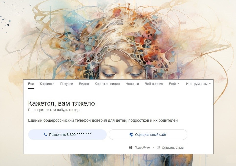 Интересное сегодня произошло. Искала я в интернете некоторую информацию и литературу по теме суицидологии. После нескольких запросов ИИ гугла выдал «Кажется, вам тяжело. Поговорите с кем-нибудь сегодня» и номер телефона доверия. Я была приятно удивлена. Поделилась этим со знакомыми и коллегами, удивилась второй раз – насколько разные реакции у людей. Кто-то кроме незаконной слежки ничего не видит за этим, кто-то, как и я, был рад тому, что современные технологии используются даже в таких, казалось бы, недоступных для них областях. Конечно же, живое тепло, понимание и поддержку близких людей, как и помощь специалиста, невозможно заменить, но если можно использовать что-то еще в качестве дополнения – почему нет? Как вы считаете?