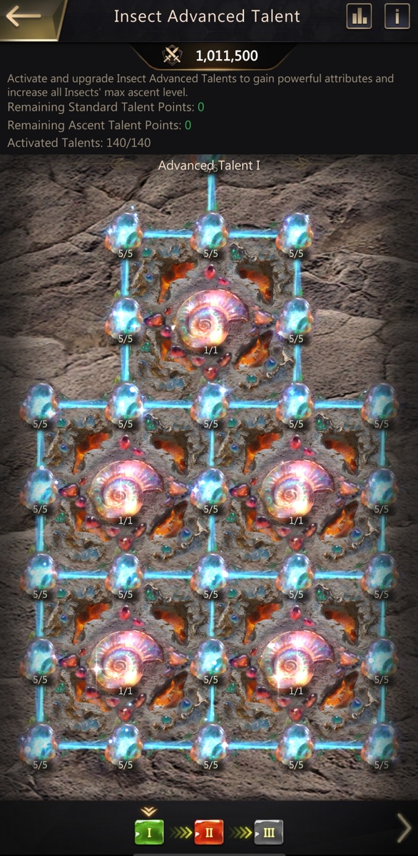 Продвинутый талант 1 Активируйте и улучшайте продвинутые таланты насекомых , чтобы получить мощные характеристики и повысить максимальный уровень. ну что же кто готов посчитать сколько вы потратите времени на прокачку всего этого? мне кажется что большая часть игроков даже не доживёт до этого момента.
