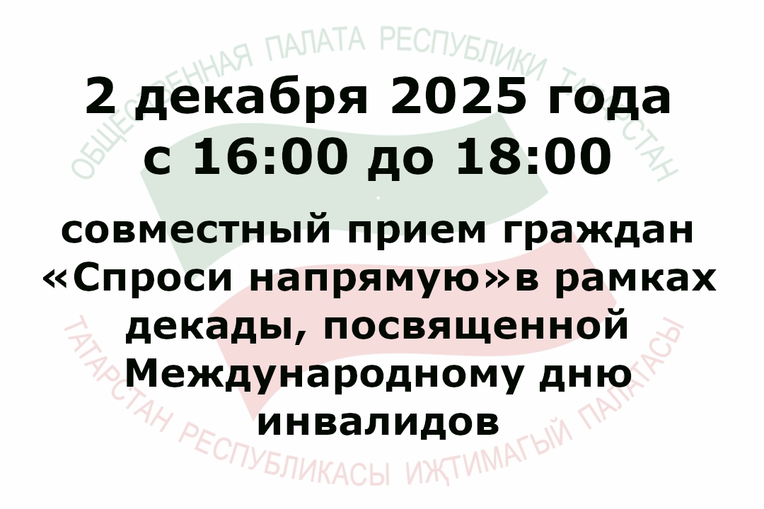 Приглашаем на совместный прием граждан «Спроси напрямую», который пройдет в рамках декады, посвященной Международному дню инвалидов. 📅 Дата: 2 декабря 2025 года