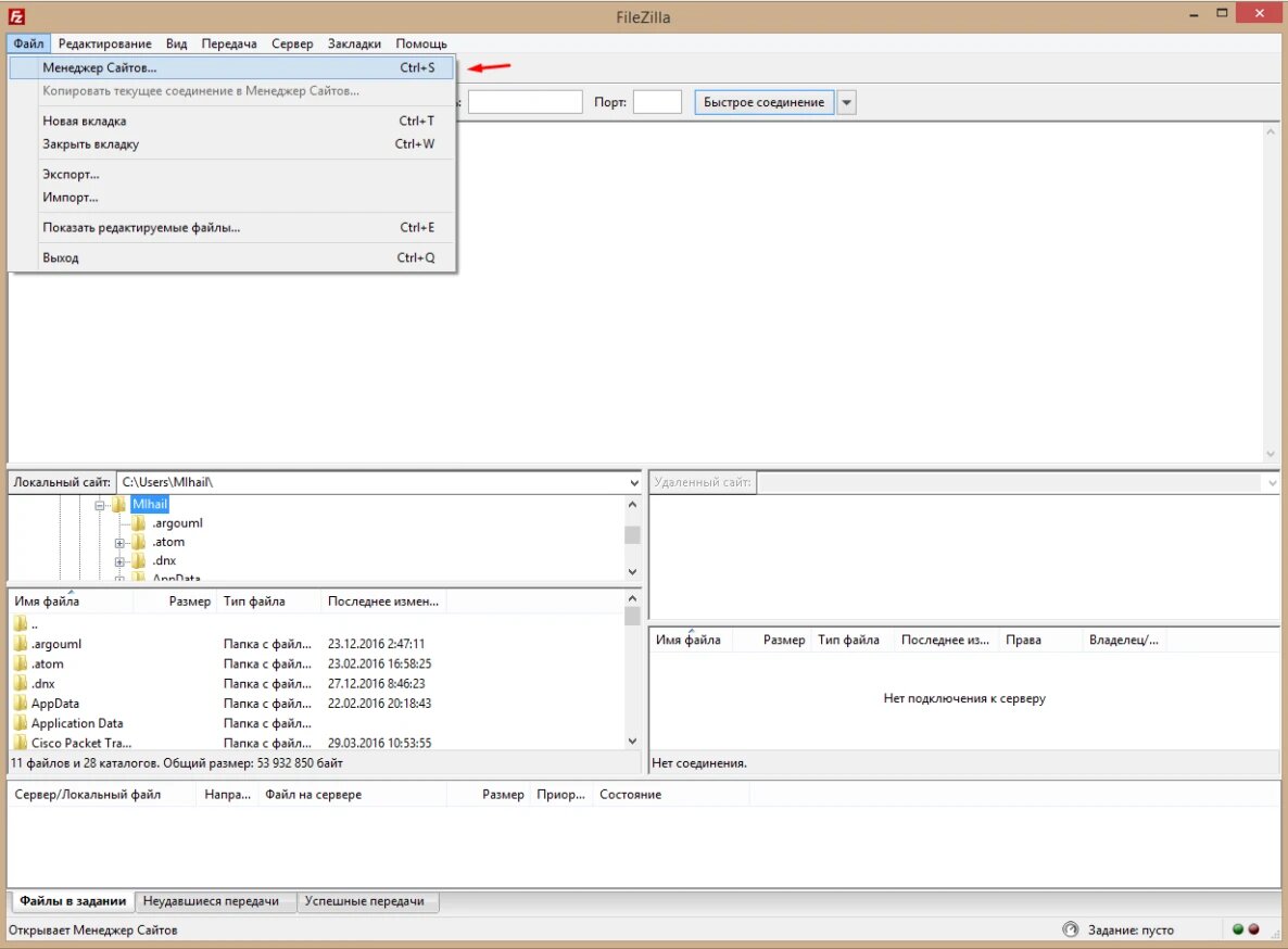В FileZilla можно сохранять данные от нескольких подключений и затем подключаться одним кликом без ввода данных. - Передавать файлы