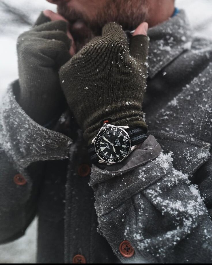 Часы зимой смотрятся особенно статусно, потому что видны только в нужный момент — когда вы снимаете перчатки или поправляете рукав.