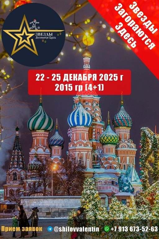 ✨ Ты готов окунуться в атмосферу настоящего зимнего праздника и яркого футбола. 🎄 Новогодний футбольный турнир в Москве. 🎄 🆕 Юноши 2015 г.р.: 22-25 декабря 2025 года Формат: 4+1 📌 Свободных мест осталось 3 🛋 НАШЕ ПРЕИМУЩЕСТВО: 🏰 Место проведения: Современные футбольные манежи Москвы 🏠 Проживание: Удобные условия в самом сердце города (всего 15 минут пешим ходом, до Красной площади!) ⎯⎯⎯⎯⎯⎯⎯⎯⎯⎯ ▌ 📸 ЧТО ТЕБЯ ЖДЁТ: 📹 Прямые трансляции матчей 📸 Профессиональные фоторепортажи 🥈 Индивидуально разработанные медали, кубки и памятные подарки Также очень интересный бонус для Тренера 🔥🔥🔥 📌 С наградами уезжают все участники турнира. ⎯⎯⎯⎯⎯⎯⎯⎯⎯⎯ ▌ 🌇 НЕ ТОЛЬКО ФУТБОЛ... Во время отдыха наша команда покажет вам московские достопримечательности и погрузит в новогодние праздники! ⎯⎯⎯⎯⎯⎯⎯⎯⎯⎯ ▌ 📞 Хочешь присоединиться? Свяжитесь с нами прямо сейчас: 📞 8-913-673-52-63 https://vk.com/zvezdizdez_moscow 🧑🤝🧑 Контактное лицо: Валентин Шилов ⎯⎯⎯⎯⎯⎯⎯⎯⎯⎯ Прими участие в нашем т