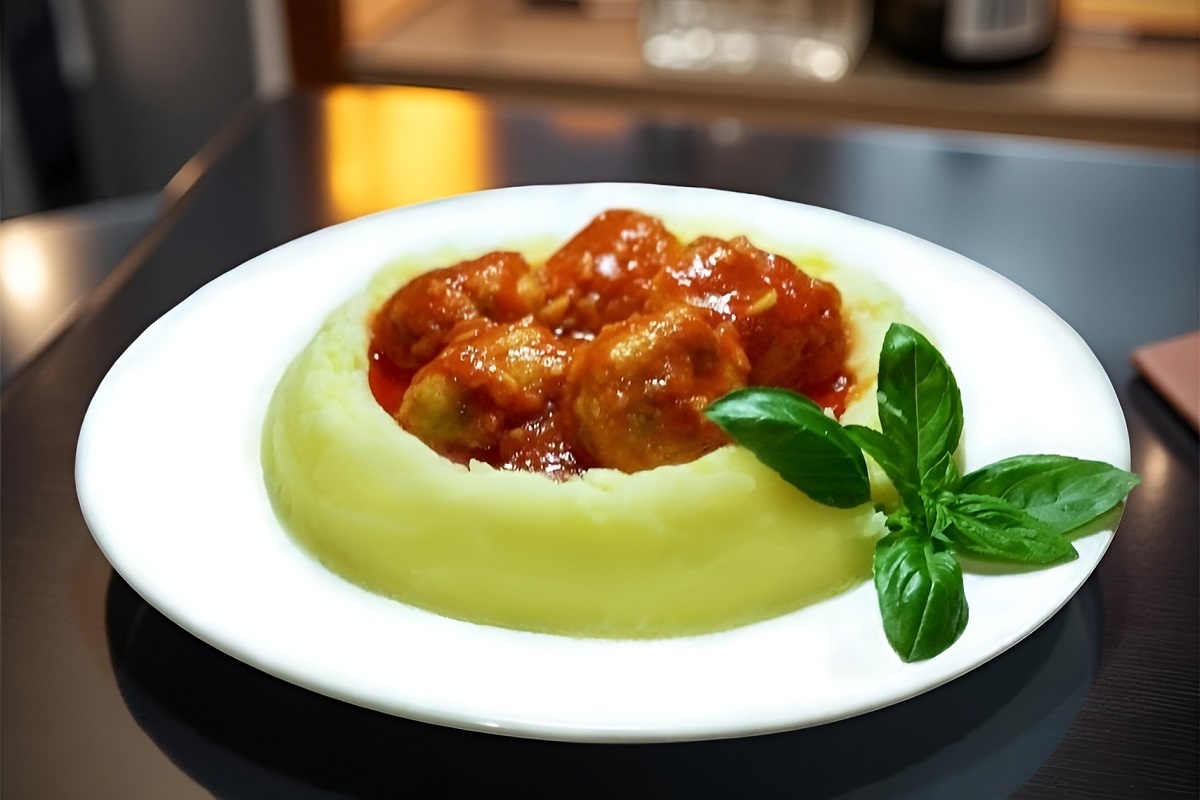 Подаём наши тефтельки горячими. Традиционно польпетте выкладывают поверх отварной пасты (спагетти, лингвини или ригатони), которые прекрасно впитывают соус. Я подавала с нежным картофельным пюре, что, в общем-то тоже не возбраняется: