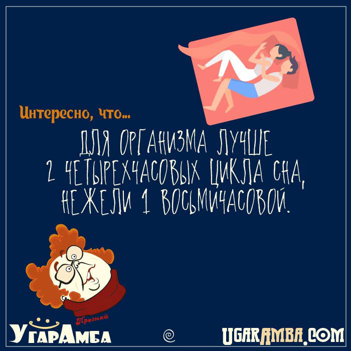 Для организма лучше 2 четырехчасовых цикла сна, нежели 1 восьмичасовой. Источник