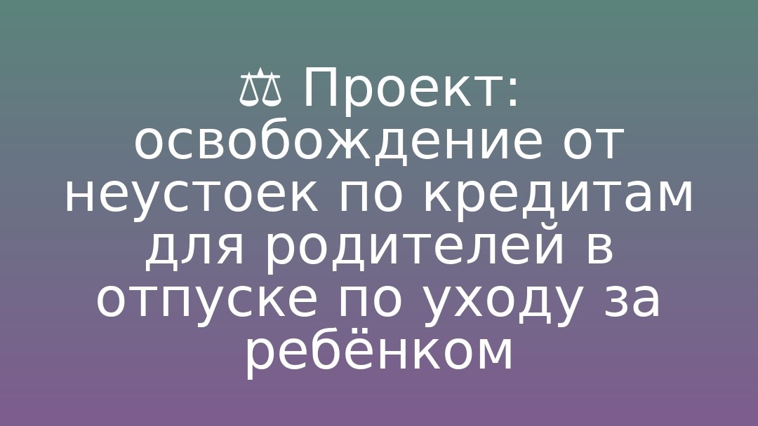 В Госдуму внесён проект поправок в закон «О потребительском кредите (займе)». Предлагается освободить граждан, находящихся в отпуске по уходу за ребёнком, от уплаты неустойки, штрафов и пеней за нарушения условий кредитного договора на период отпуска. Льгота распространяется на женщин и мужчин; порядок подтверждения статуса должника установит Правительство РФ. В случае принятия закон вступит в силу с 1 марта 2026 года.