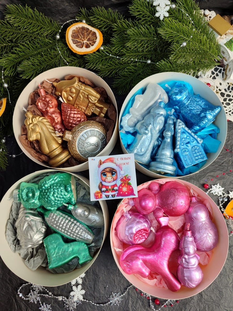 Подарочный набор свечей в стиле СССР "Новогодние игрушки" — это волшебное путешествие в атмосферу праздников, окутанное ностальгией и теплом.🎄🧡 Каждая свеча в этом наборе выполнена с любовью и вниманием к деталям, воспроизводя яркие и запоминающиеся образы советских новогодних игрушек.🎉🎊 Представьте себе, как в свете этих свечей оживают воспоминания о зимних вечерах🌲, когда дом наполнялся ароматом мандаринов 🍊, а за окном искрился снег ❄️. Уникальные формы и насыщенные цвета свечей напоминают о любимых стеклянных украшениях: от ярких шары до изящных фигурок, каждая из которых хранит в себе частичку волшебства.☃️ Этот набор станет не только прекрасным украшением вашего праздничного стола, но и символом домашнего уюта и тепла. Свечи создадут неповторимую атмосферу, наполнив ваш дом светом и радостью, а также станут идеальным подарком для тех, кто ценит традиции и хочет вернуть в свою жизнь частичку советского праздника. Подарите себе и своим близким мгновения счастья и уюта с эти