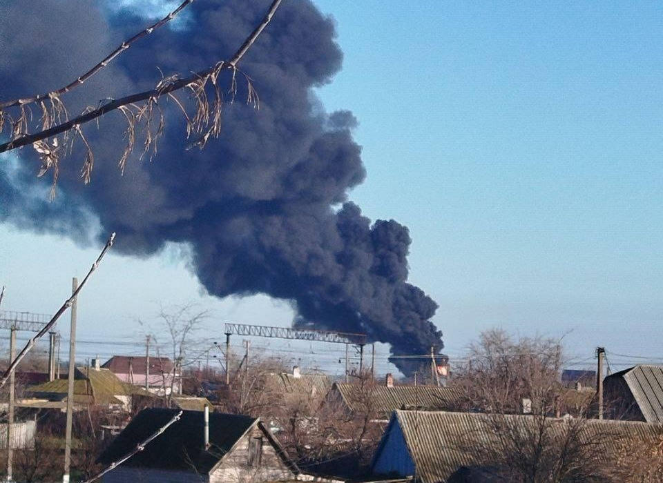 Бензовоз загорелся в Херсонской области, дым видно за несколько километров