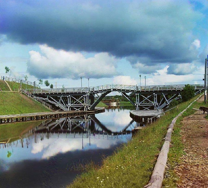 Подъемный мост на реке Вытегре. #Вытегра. 1909 год