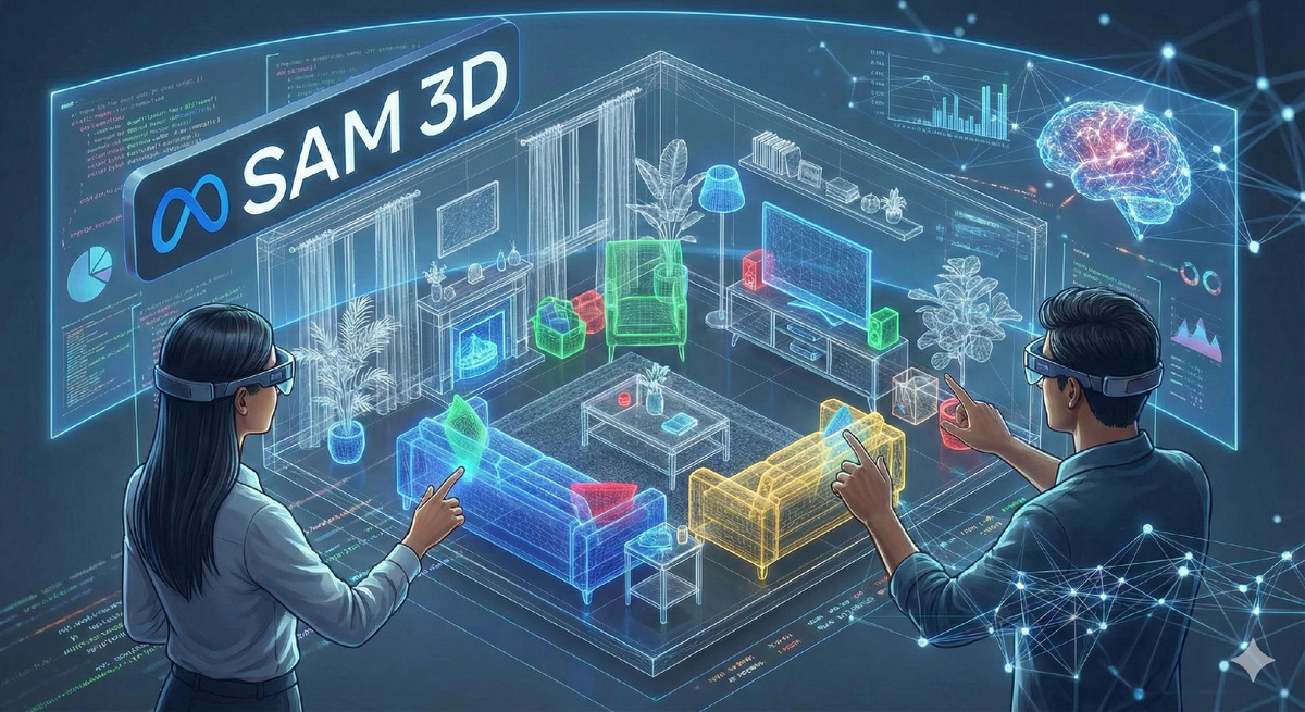В 2025 году Meta представила одну из самых впечатляющих технологий в области компьютерного зрения — SAM 3D. Это система, способная превращать обычные 2D-фотографии в полноценные 3D-модели. То, что когда-то требовало сложных сканеров, десятков снимков и профессионального ПО, теперь доступно каждому буквально в пару кликов. Мир 3D становится ближе, проще и быстрее 🔥 Подписывайтесь на мой телеграмм канал - НейроПульс, там я делюсь эксклюзивным контентом про ИИ! Главная идея SAM 3D — сделать создание трёхмерных объектов таким же простым, как загрузка фото. Пользователь выбирает изображение, система анализирует его, восстанавливает форму, глубину, структуру и выдает готовый 3D-меш, который можно вращать, просматривать, экспортировать и использовать в CG-проектах. Эта технология открывает двери не только художникам, но и блогерам, разработчикам игр, маркетологам и всем, кто работает с визуальным контентом 🎨 Проект включает две ключевые модели: • SAM 3D Objects — создаёт трёхмерные модели