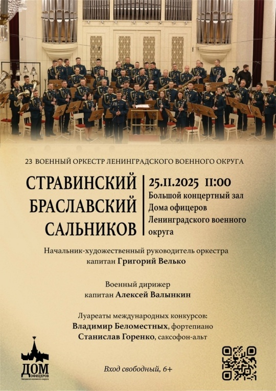Друзья, приветствую вас на канале "Счастлива по собственному желанию". Сегодня был очень хороший день! А начиналось все не очень хорошо. Дело в том, что ноябрь - пожалуй, самый холодный, сырой и промозглый месяц в Петербурге, моему ревматологическому заболеванию просто противопоказан. В ноябре (впрочем, как и в декабре, январе, феврале и марте) мне в Петербурге очень плохо. Но в ноябре - особенно! Увы, в этом году лимит отпусков у мужа закончился, сын учится в 10 классе, поэтому уехать куда-то пока не могу. Поэтому стараюсь бороться с обострением, получая положительные эмоции от искусства: картин, музыки, книг. Бывает, как сегодня, с утра накрывают боли и чувство "никуда не поеду, буду лежать". Но стоит лишь заставить себя встать, как день оказывается полон приятных сюрпризов, и о плохом забываешь напрочь! Сегодня планировала посетить очередной концерт военного духового оркестра в Доме Офицеров. В программе значилось: Прямо скажу, не самые мои любимые композиторы. Я человек простой,