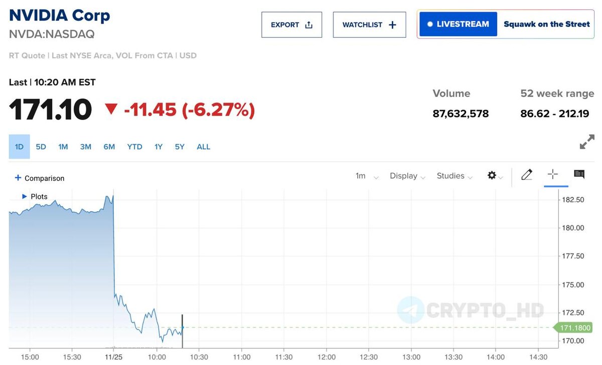 🔽 Компания Nvidia (#NVDA) потеряла сегодня уже более $250,000,000,000 рыночной капитализации…