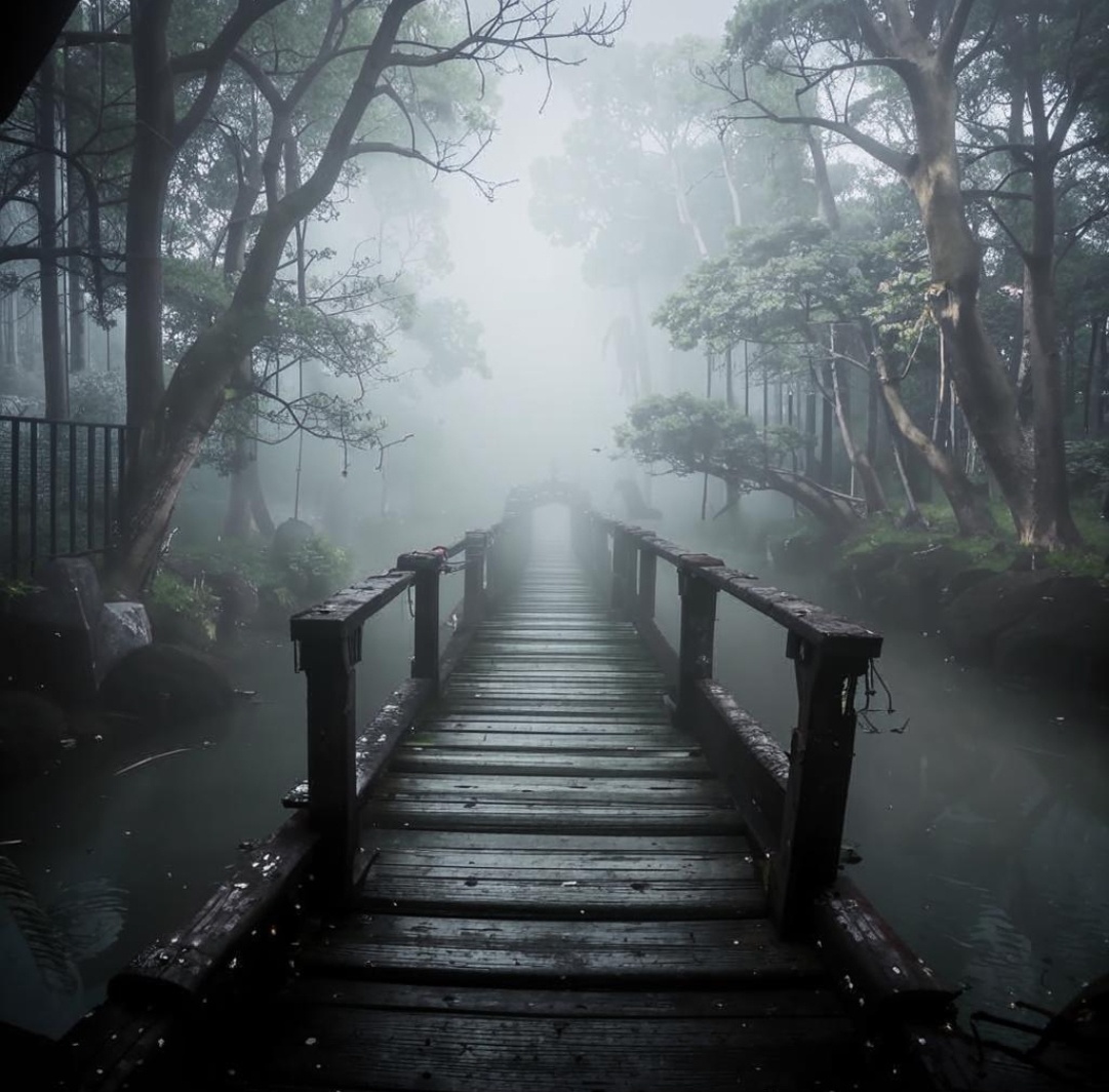 Скрип старых досок под ногами отдавался гулким эхом в мёртвой тишине заброшенной деревни. Туман, липкой пеленой обволакивающий покосившиеся избы, делал мостик через речушку похожим на портал в иное измерение. Говорили, что каждый, кто перейдёт его в полнолуние, пропадёт без следа.